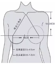正面:鎖骨和乳頭成等邊三角形較美