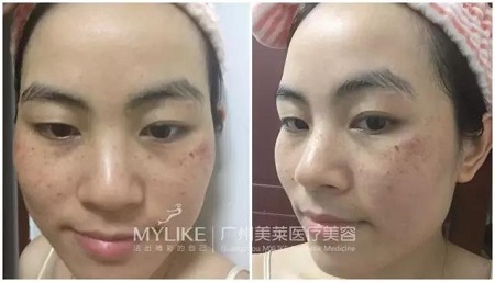 小like科普:大Q激光能使黑色素瞬間加熱爆破,并抑制黑色素的活性;而755nm波長直接鎖定"黑色色素",具有美白嫩膚作用。兩者的結合使用對華菲色斑治療效果非常好哦~!