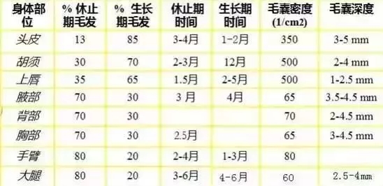 而不同部位的毛發(fā)其生長周期也不相同