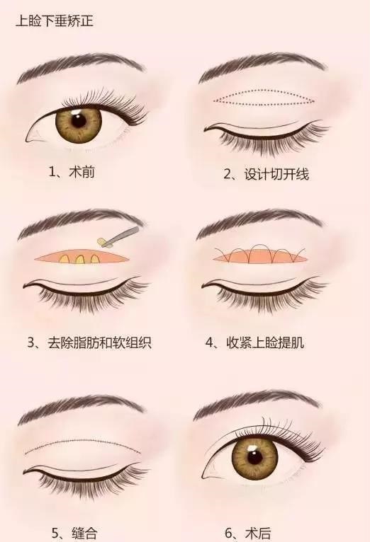 一般根據(jù)術(shù)者的眉眼距離及皮膚松弛程度選擇眉中、眉上或眉下緣切口,按設(shè)計線切開皮膚、切除部分松弛的皮膚、也可以一并切除不良紋眉、上提固定眼輪匝肌及額肌、縫合皮膚創(chuàng)口。該方法創(chuàng)傷小、恢復(fù)快、眉下切口疤痕隱蔽、對上眼瞼皮膚松弛及外眼角下垂改善明顯,也有明顯改善眼角魚尾紋的作用。