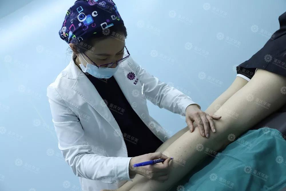 醫(yī)師用筆在小腿上標(biāo)記注射點(diǎn)