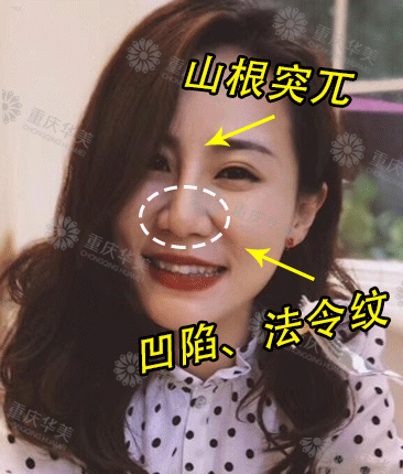 因?yàn)橹暗尼t(yī)生沒(méi)有綜合考慮,只一味粗暴加高了鼻梁,鼻頭依然寬、扁、大,鼻基底凹陷、法令紋深的問(wèn)題依然存在。