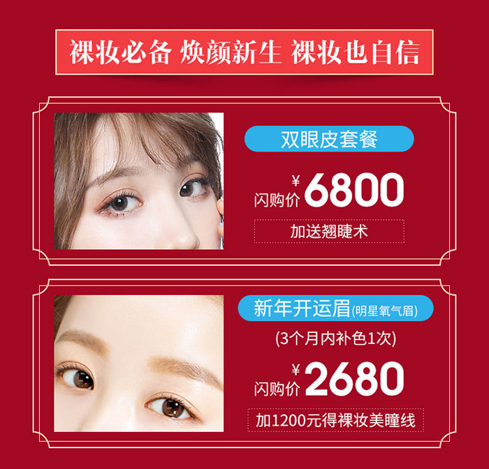 【雙眼皮套餐】美出強(qiáng)大,為“睛”彩綻放;【新年開運(yùn)眉】美學(xué)定制,素顏小心機(jī)。2021,煥顏新生,裸妝也自信!