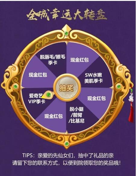 現(xiàn)金紅包、視頻VIP季卡、脫毛項目