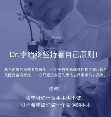 李教授本人尊崇“自然”的手術(shù)理念:即手術(shù)恢復(fù)后,旁人會(huì)覺(jué)得您“變好看了”,但看不出人工雕琢的痕跡。在這個(gè)范圍內(nèi),您可以要求“夸張些”或“保守些”。但若是超出了范圍,他便會(huì)請(qǐng)您另找適合您風(fēng)格的醫(yī)師來(lái)幫您實(shí)現(xiàn)哦!就是這么任性!
