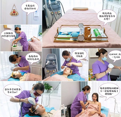重慶美萊“頭等艙”脫毛一共有32個步驟,不用擔心耗時久,技師小姐姐們手法熟練的很,不排隊不等候,一個午休的時間足以。
