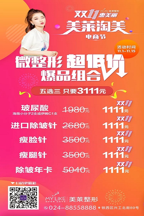 2018沈陽(yáng)美萊慧美麗艾莉薇玻尿酸雙十一特價(jià)來(lái)襲!