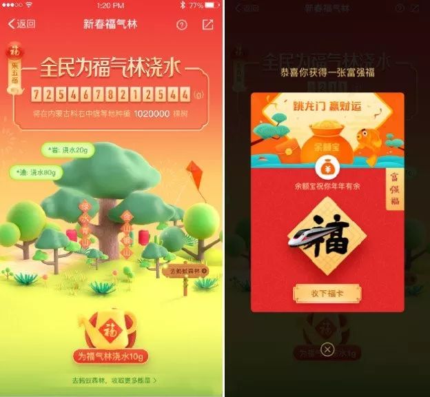 在螞蟻森林的“福氣林”澆水就有機會獲得“???rdquo;